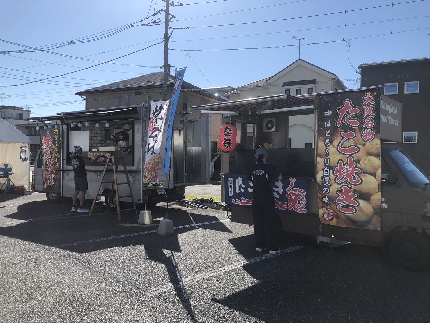 当日はお天気も良く、9月には入りましたがまだまだ真夏日が続く中での実施となりました。10時からイベントが開催されるとのことでしたので、キッチンカー3台とも8時半頃現地へ向かい、駐車場の一角をキッチンカー出店の場所としてご用意いただいておりました。
