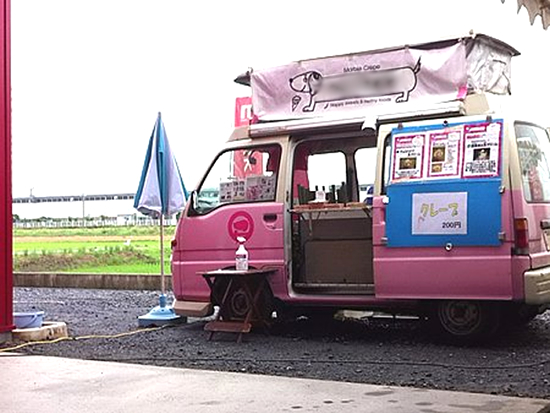 フードコーナーの一画に駐車してクレープをお渡しした移動販売車